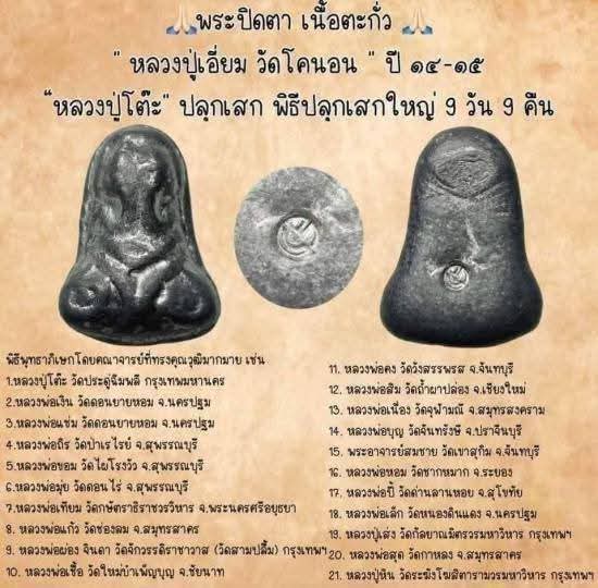 พระปิดตา หลวงปู่เอี่ยม ออกวัดโคนอน เนื้อตะกั่ว ปี 2514 (หลวงปู่โต๊ะปลุกเสก) จำนวน 3 องค์ |
