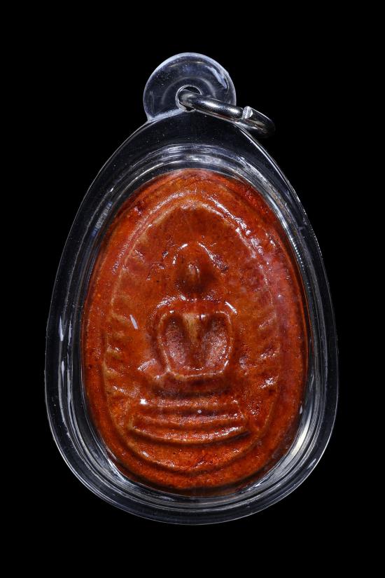 พระพิมพ์ขุนแผนใบพุทรา(กลีบบัว มีกิน) เคลือบสีแดง อาจารย์ลอย โพธิ์เงิน วัดรัตนชัย(จีน)