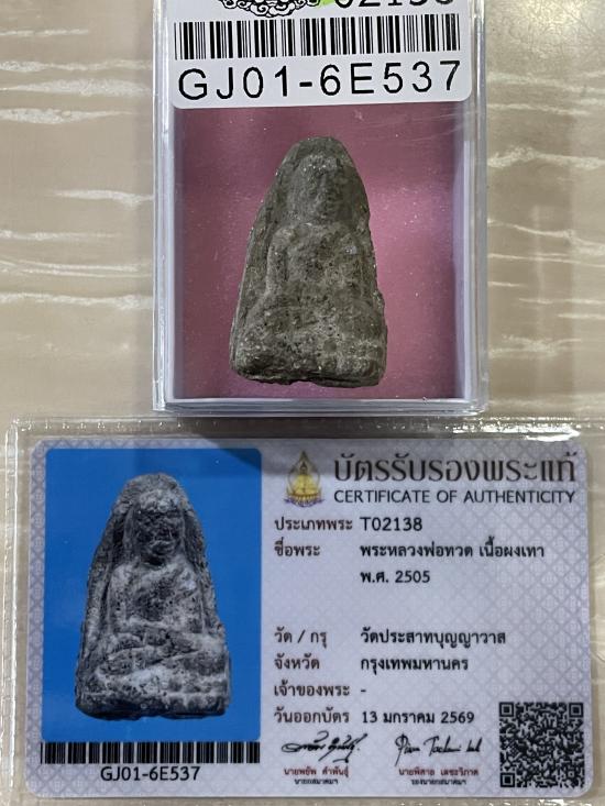 (เคาะแดง5900) +บัตรสมาคม หลวงปู่ทวด วัดประสาท เนื้อเทา บล็อคจีวรกลับ