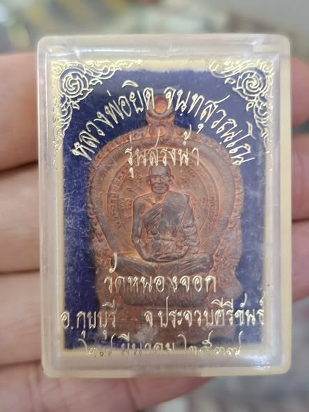หลวงพ่อยิด วัดหนองจอก เหรียญนั่งพาน ปี 37 ทองแดง สวยแดงแปร๊ดๆ กล่องเดิม หมายเลข 22703 |