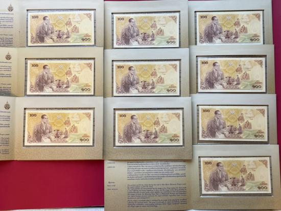 ธนบัตร 100 บาท ที่ระลึก 84 พรรษา รัชกาลที่ 9 + ปก จำนวน 10 ใบ สภาพตามรูป