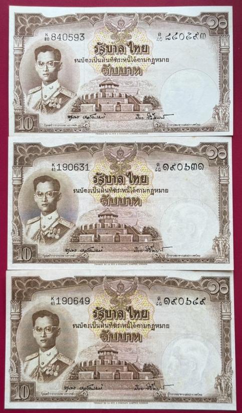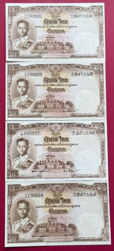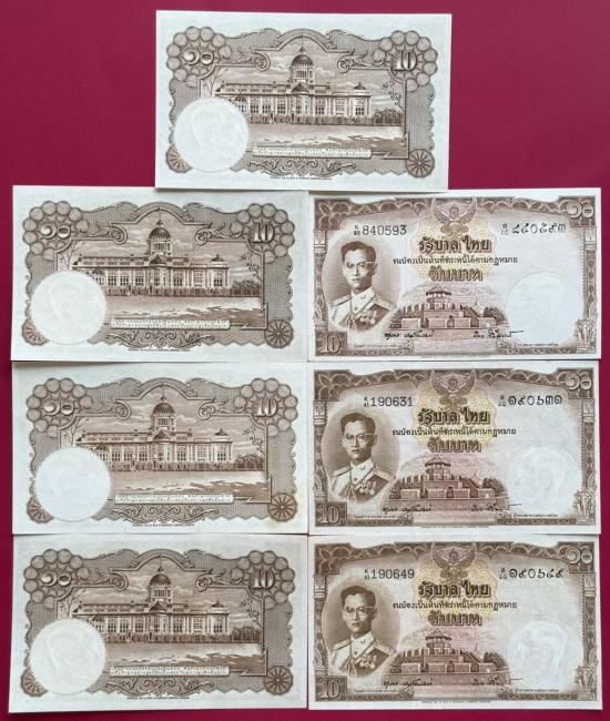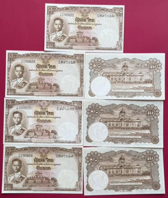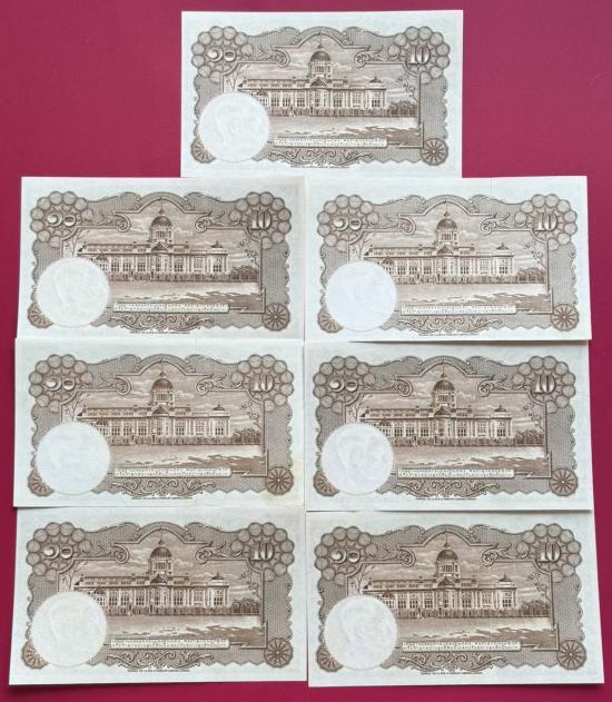 ธนบัตร 10 บาท รัชกาลที่ 9 แบบที่ 9 จำนวน 7 ใบ สวยไม่ผ่านการใช้ เดิมมากๆ