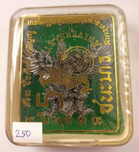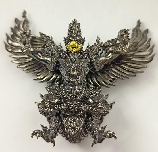 พญาครุฑ "ชนะมาร" รุ่น 5 วัดครุฑธาราม (พิมพ์ใหญ่ ขนาด 4 ซม.) เนื้อเหล็กน้ำพี้ ปากปิดทองคำแท้ เบอร์ 250 พร้อมกล่องครับ