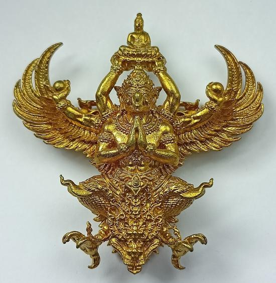 พญาครุฑ รุ่น ราชันมหาเศรษฐี วัดครุฑธาราม (พิมพ์ใหญ่ ขนาด 4.8ซม) เนื้อเบญจโลหะ เบอร์ 74 พร้อมกล่องเดิมครับ