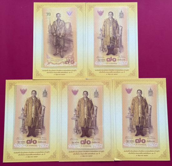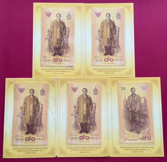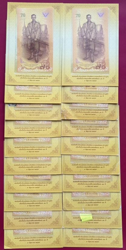 ธนบัตร 70 บาท รัชกาลที่ 9 ที่ระลึก 70 ปีครองราชย์ จำนวน 20 ใบ พร้อมปก สภาพสวยตามรูป