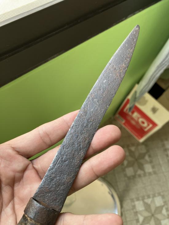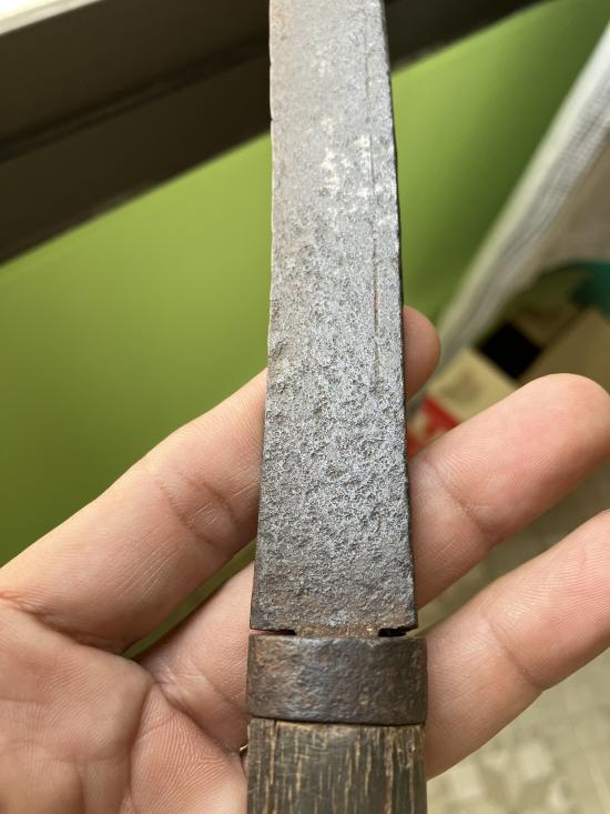 ยาว12นิ้วใบเก่าจัดสันมีดหนาๆพอเห็นลายนิดน้อยสนิมปลายเข็มขึ้นทั้งเล่มเก่าแบบธรรมชาติครับ ด้ามเขาไม่แพงครับ