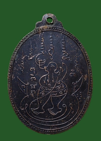 ด้านหลัง เป็นยันต์ นะ หมอมหาวิเศษ หรือ ยันต์นกคุ้ม มีการตอกโค๊ต ที่ด้านหน้าเหรียญทุกเหรียญ