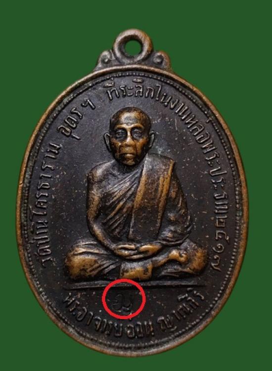 เหรียญรุ่นแรก หลวงปู่อ่อน ญาณสิริ วัดป่านิโครธาราม ปี 2517 ( ลป.ฝั้น ลป.ขาว ลป.เทสก์ ลป.วัน ลป.จันทร ร่วมปลุกเสก)