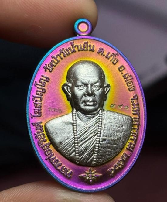 **เคาะเดียว**เหรียญชนะจนรวยพันล้าน ปี 2564 เนื้อไทเทเนียมหน้ากากเงิน หมายเลข 990 หลวงพ่อสุริยันต์ วัดป่าวังน้ำเย็น จังหวัดมหาสารคาม เหรียญสวยมาก กล่องเดิม พร้อมเลี่ยม