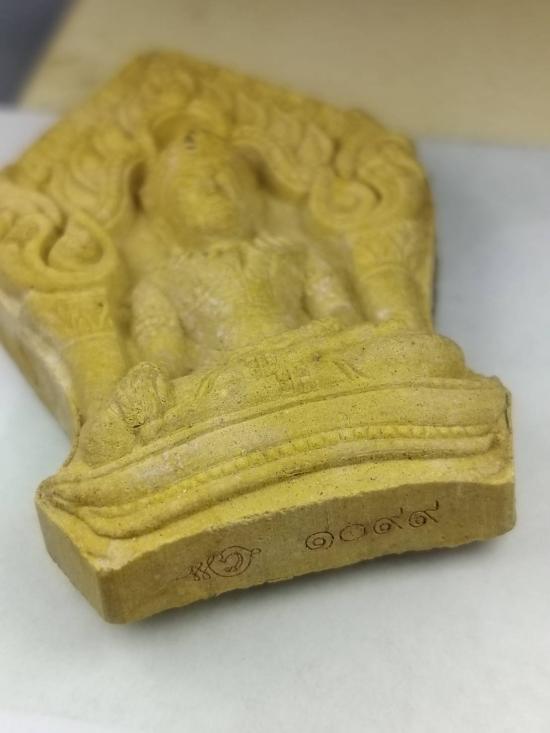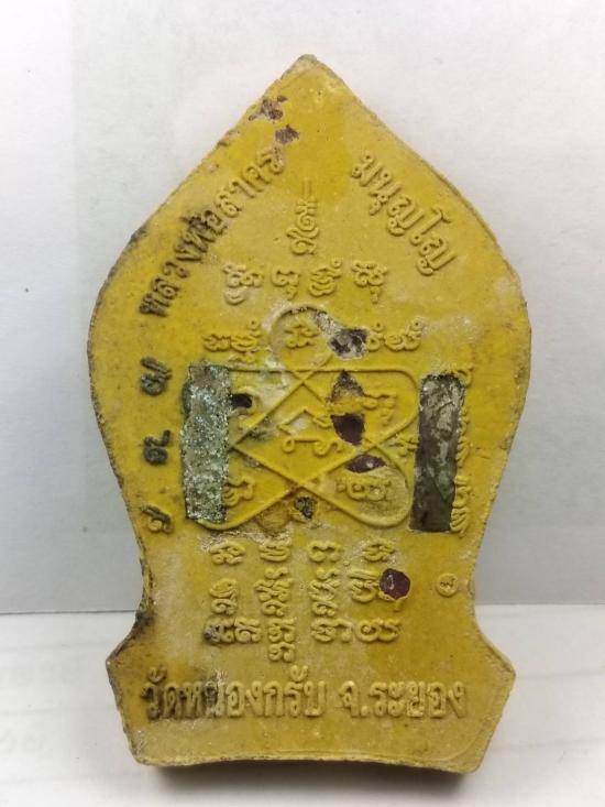 พระยอดขุนพลบ้านค่ายพิมพ์ใหญ่เนื้อว่านดอกทอง หลังตะกรุดเงินคู่ โรยพลอยเสก หมายเลข 1099