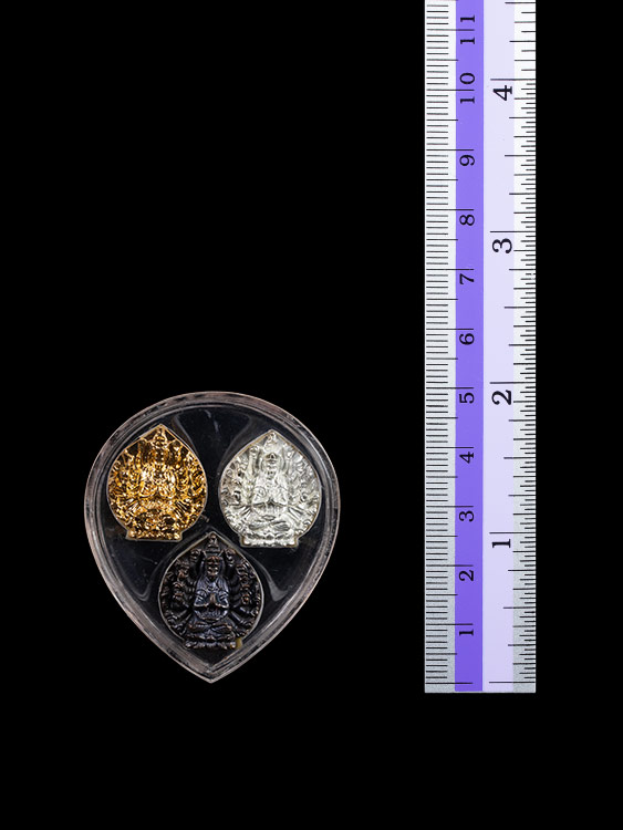 พระโพธิสัตว์อวโลกิเตศวร เจ้าแม่กวนอิม ปางพันมือ สำนักเตาปูน ชลบุรี ครบชุด 3 เนื้อ กะไหล่ทอง กะไหล่เงิน รมดำ