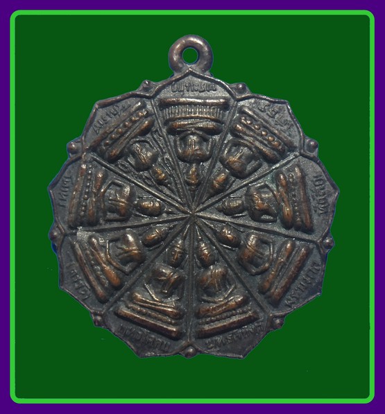 สวย-180*เหรียญดอกไม้ 9พระพุทธ หลังสมเด็จโตฯ วัดเทพากร ปี2514 หลวงพ่อกวย,ลป.โต๊ะ ปลุกเสก |