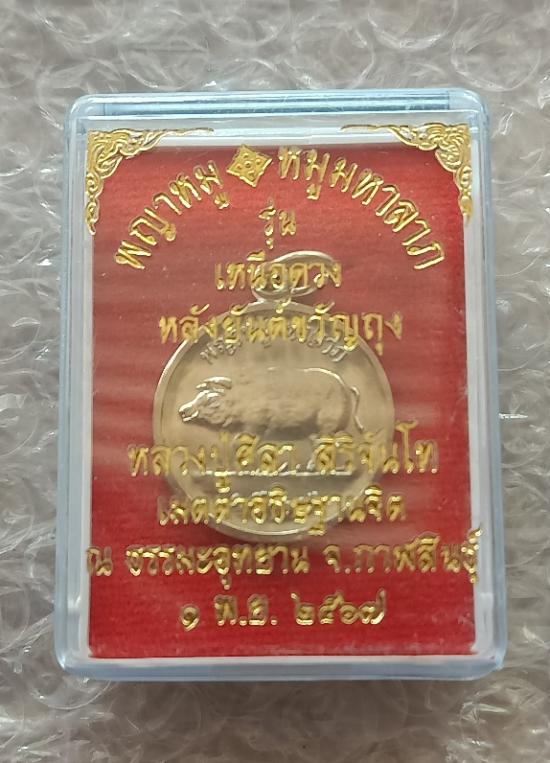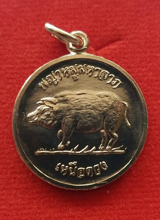หลวงปู่มหาศิลา สิริจันโท ธรรมอุทยาน จ.กาฬสินธุ์ พญาหมูมหาลาภ รุ่น เหนือดวงหลังยันต์ขวัญถุง เนื้ออัลปาก้า