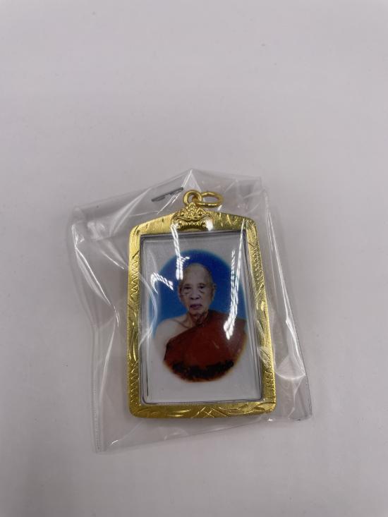 รูปถ่าย หลวงปู่แผ้ว ปวโร วัดรางหมัน จ.นครปฐม ขนาด 1.5 * 1 นิ้ว หลังแผ่นตะกั่วจารยันต์ พร้อมเลี่ยมกรอบไมครอน
