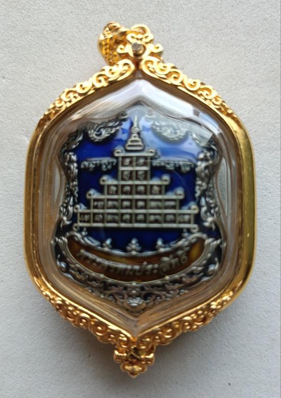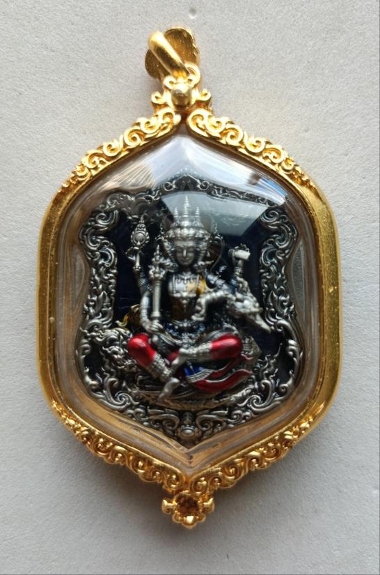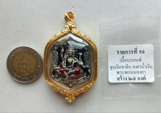 วัดใจเคาะเดียวแดงจ้า พระพรหมประสิทธิ์ พุทธศิลป์ เนื้อบรอนซ์ชุบเงินซาตินลงยาน้ำเงิน พระพรหมลงยา เลี่ยมกรอบพุทธศิลป์กันน้ำ เคาะเดียวแดงจ้า