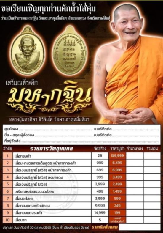 เคาะแรก200 เหรียญมหากฐิน หลวงปู่มหาศิลา เนื้อเงินบริสุทธิ์ No.21 ปี2565