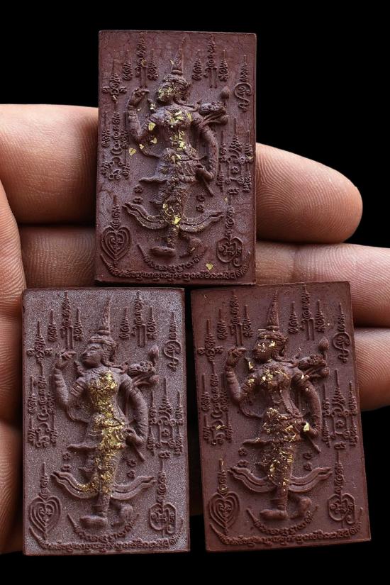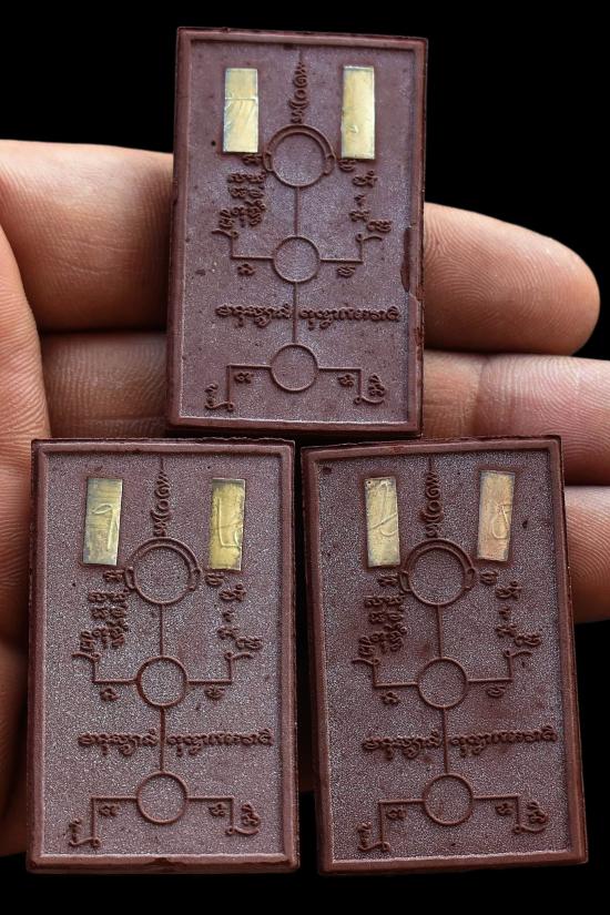 ชุด 3 องค์...เพชรพญาธร เนื้อมหาว่านพันนารีรัก ร้อยนารีหลง ผสมว่านเสน่ห์จันทร์แดง (ผงมวลสารล้วน ครูแรงเต็มสูตร) โรยชนวนอาถรรพณ์ หลังยันต์หุ่นมหาเสน่ห์ ฝังตะกรุดเงินลงนะเมตตา 2 ดอก มวลสารครู ปี 2552 หลวงปู่เฉลิม วัดบุญนาคประชาสรรค์ จ.สมุทรสงคราม พร้อมซองรูปใบฝอยเดิมจากวัด สภาพพระตามรูปที่ลงทุกประการ (ขนาดประมาณ 4.7 x 2.9 ซม.)