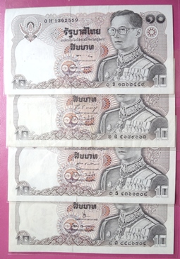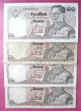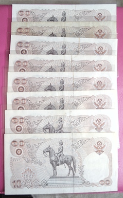 ธนบัตรหมุนเวียน แบบที่ 12 ฉบับราคา 10 บาท.รวม 8 ฉบับ 8 ลายเซ็น สภาพผ่านการใช้ มีรอยพับตามรูป.