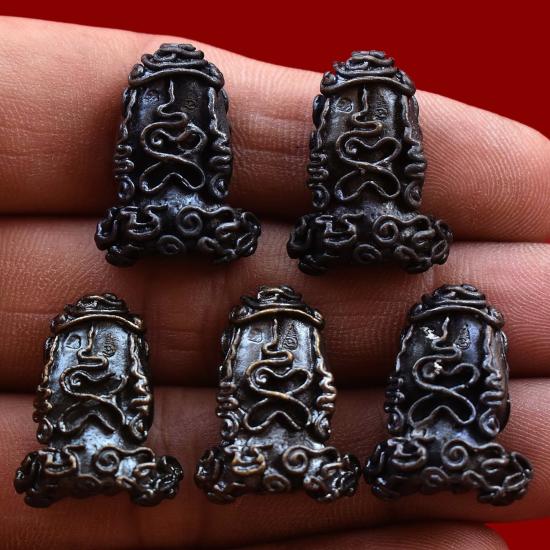 ชุด 5 องค์...พระปิดตายันต์ยุ่งมหากัน เนื้อโลหะรมดำ ปี 2556 หลวงพ่อไพโรจน์ วัดโคกพระ จ.สิงห์บุรี พร้อมซองเดิมจากวัด สภาพพระตามรูปที่ลงทุกประการ (ขนาดประมาณ 2.4 x 1.9 ซม.)
