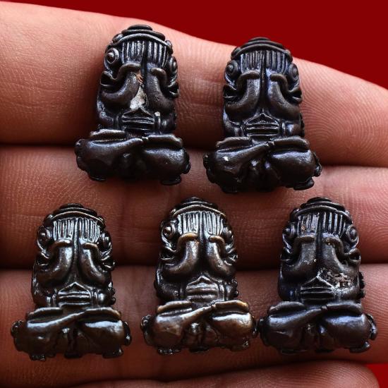 ชุด 5 องค์...พระปิดตายันต์ยุ่งมหากัน เนื้อโลหะรมดำ ปี 2556 หลวงพ่อไพโรจน์ วัดโคกพระ จ.สิงห์บุรี พร้อมซองเดิมจากวัด |
