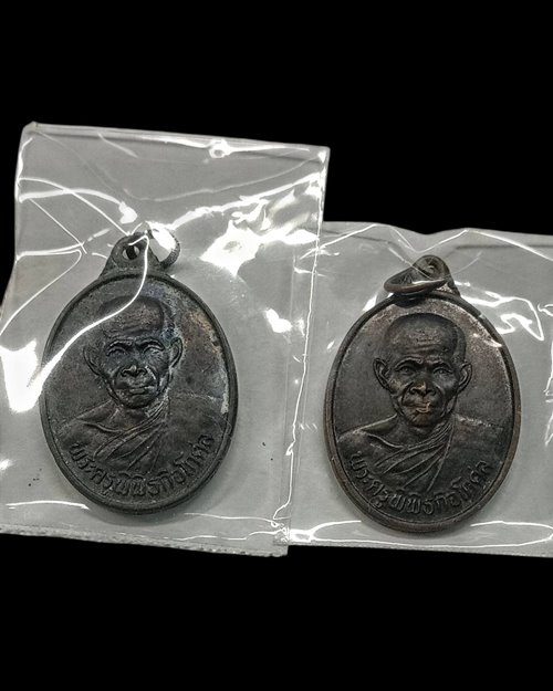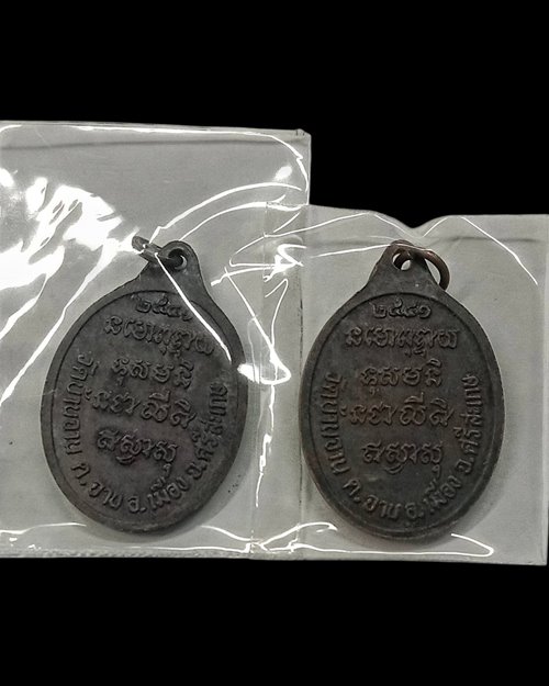 วัตถุมงคลยุคต้นๆของวัดบ้านจาน ที่หลวงปู่หมุนเสก สภาพเหรียญสวยสมบูรณ์ รมดำเดิมๆ มีแป้งในพิธีติดเหรียญด้วยครับ