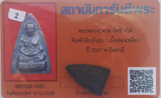 เคาะเดียวแดง++พระหลวงปู่ทวด วัดช้างให้ พิมพ์กลีบบัวรุน 1 เนื้อทองเหลือง ปี 2507 สวยเดิมพร้อมบัตรรับรองพระแท้ครับ