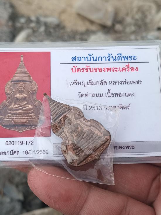 เคาะเดียวแดง++เข็มกลัด หลวงพ่อเพชร วัดท่าถนน เนื้อทองแดง ปี2513 จ.อุตรดิตถ์ สภาพสวยๆ พร้อมบัตรรับรอง