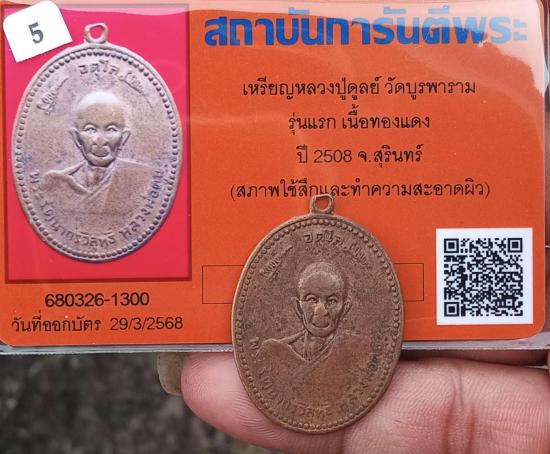 เคาะเดียวแดง++หลวงปู่ดูลย์(ดุลย์) เหรียญรุ่นแรก เนื้อทองแดง 2508 สภาพใช้ มาพร้อมบัตรการันตีพระ