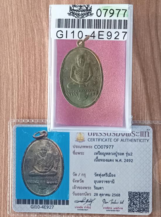 เคาะเดียวแดง+++เหรียญหลวงปู่รอด รุ่น2 เนื้อทองแดง พ.ศ. 2492 วัดทุ่งศรีเมือง จ.อุบลราชธานี มาพร้อมบัตรสมาคมครับ