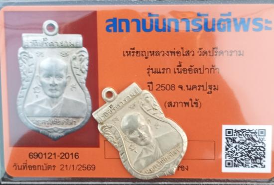 เคาะเดียวแดง+++เหรียญหลวงพ่อไสว วัดปรีดาราม รุ่นแรก เนื้ออัลปาก้า ปี 2508 จ.นครปฐม (มาพร้อมบัตรรับรองพระแท้สภาพใช้)