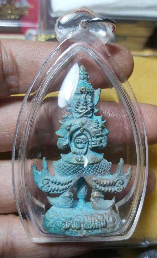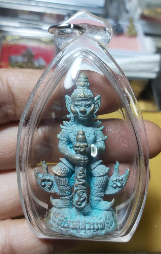 หลวงปู่กาหลงเขี้ยวแก้ว ท้าวเวสสุวรรณเนื้อสนิมเขียว รุ่นแรก พศ.2549 มีโค้ดมีหมายเลข