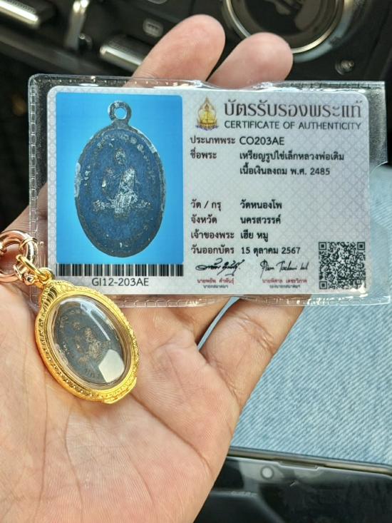 เหรียญลงถม หลวงพ่อเดิม วัดหนองโพ จ.นครสวรรค์ พร้อมเลี่ยมทอง 5 g