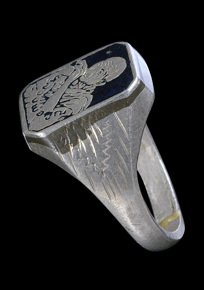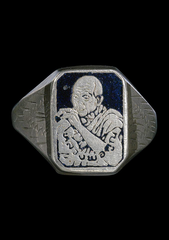 แหวนรูปเหมือนหันข้าง พิมพ์สี่เหลี่ยม ( เนื้ออัลปาก้าถมดำ ) พ .ศ.2536 ( วงกว้าง 1.4 ซ.ม. )