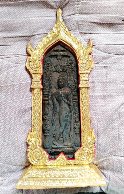 พระกำแพงศอก หลวงพ่อขอม วัดไผ่โรงวัว(วัดโพธาราม) จ.สุพรรณบุรี พ.ศ.๒๕๐๕ พร้อมซุ้ม(สีทอง)ตั้งบูชาส่งพระตรงตามรูปครับ |