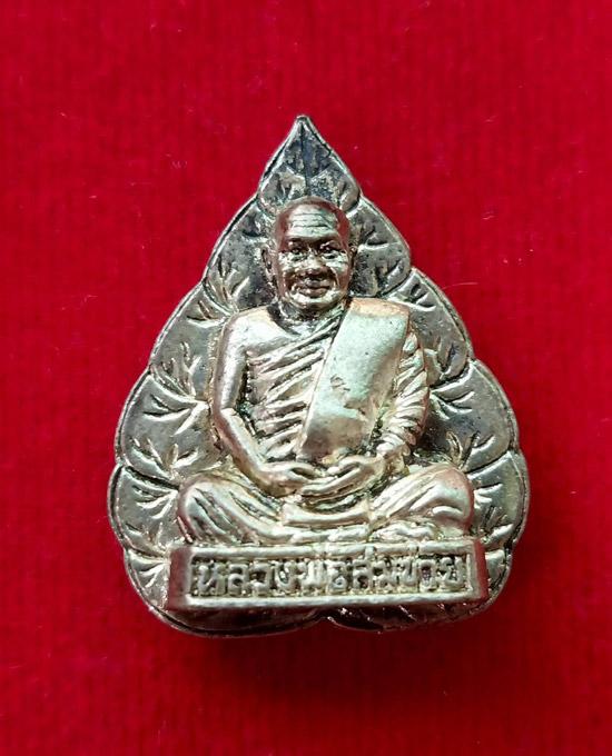 เหรียญหล่อใบโพธิ์เนื้อเงินหลวงพ่อสมชาย วัดเขาสุกิม รุ่นสร้างเจดีย์ มาพร้อมกล่อง