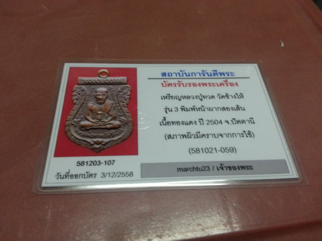 หลวงพ่อทวด บล็อคหน้าผากสองเส้น ประคตข้างเดียว เนื้อทองแดง ปี2504 สภาพยังสวย พร้อมบัตรรับรอง