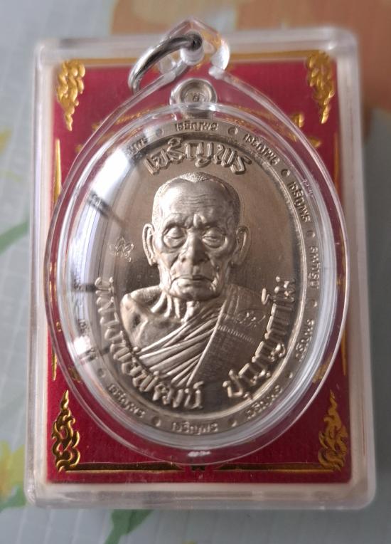 เหรียญเจริญบน 65 ขอบเจริญพร หลวงพ่อพัฒน์ ปุญฺญกาโม เนื้ออัลปาก้า เลข ๑๖๓๑ เลี่ยมพร้อมใช้ สวยๆ พร้อมกล่องเดิม