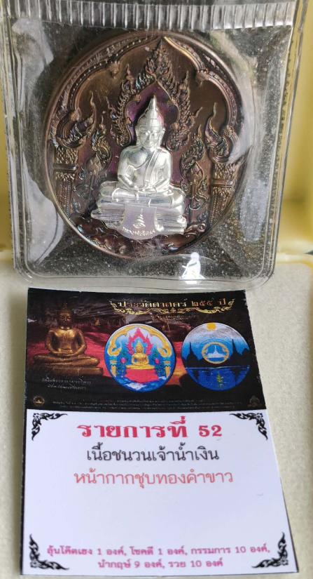 เหรียญหลวงพ่อโสธร รุ่น"ประวัติศาสตร์ครบรอบ 255 ปี"วาระพิเศษ(วัดสร้าง) วัดโสธรฯ ฉะเชิงเทรา เนื้อชนวนเจ้าน้ำเงิน หน้ากากชุบทองคำขาว หลังติดมวลสาร หมายเลข ๕๒ พร้อมกล่อง เหรียญสวยมากคับ