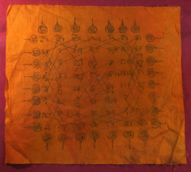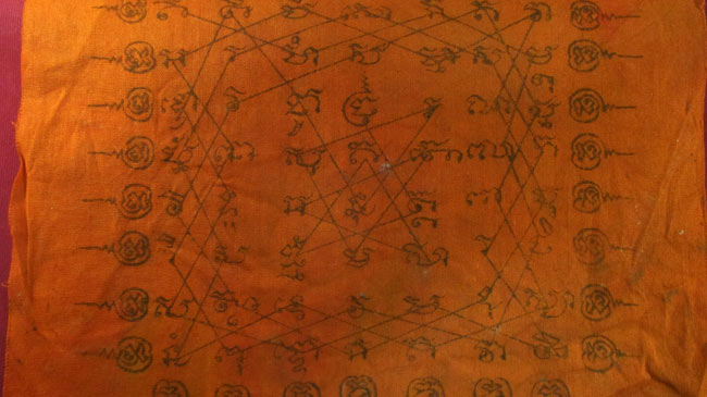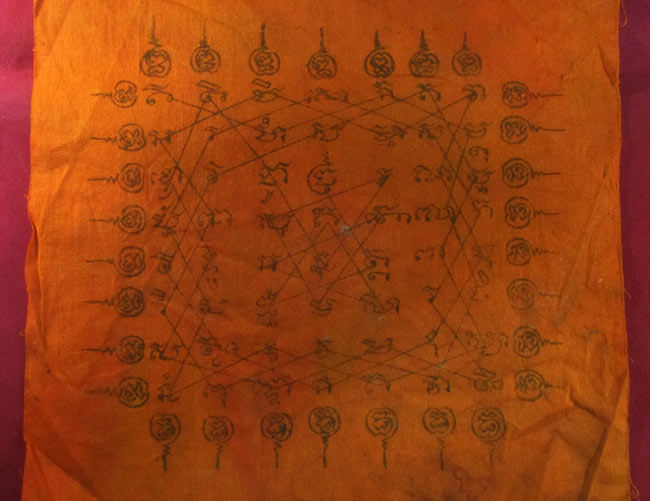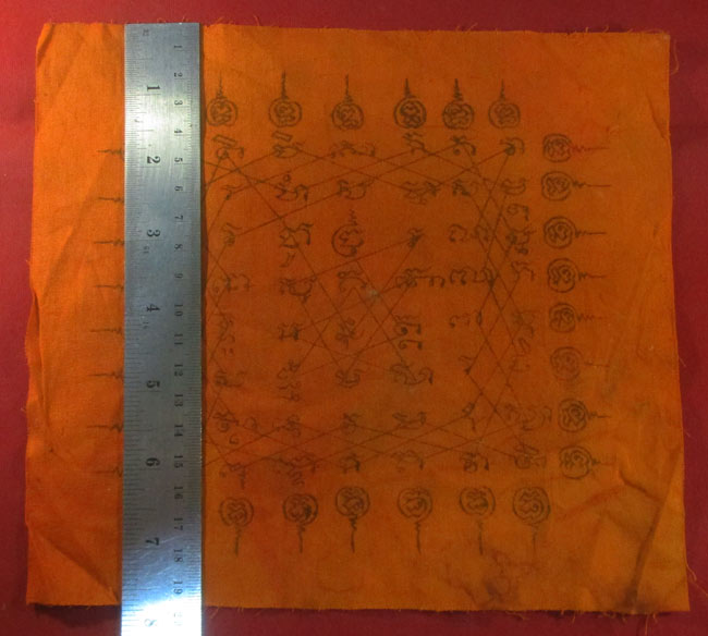 ผ้ายันต์ ไม่ทราบที่ จารยันต์ด้วยมือ เนื้อผ้าจีวร ครับ