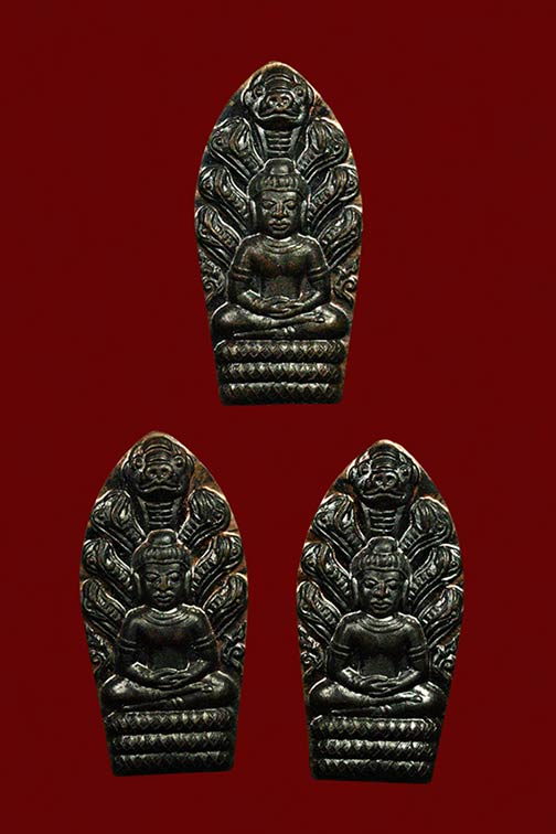 3 ชิ้น พระนาคปรก ( เนื้อนวะ ) ใบมะขาม ไหว้ครู ครูบากฤษณะ จ.นครราชสีมา |