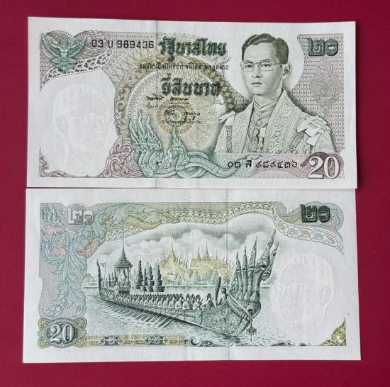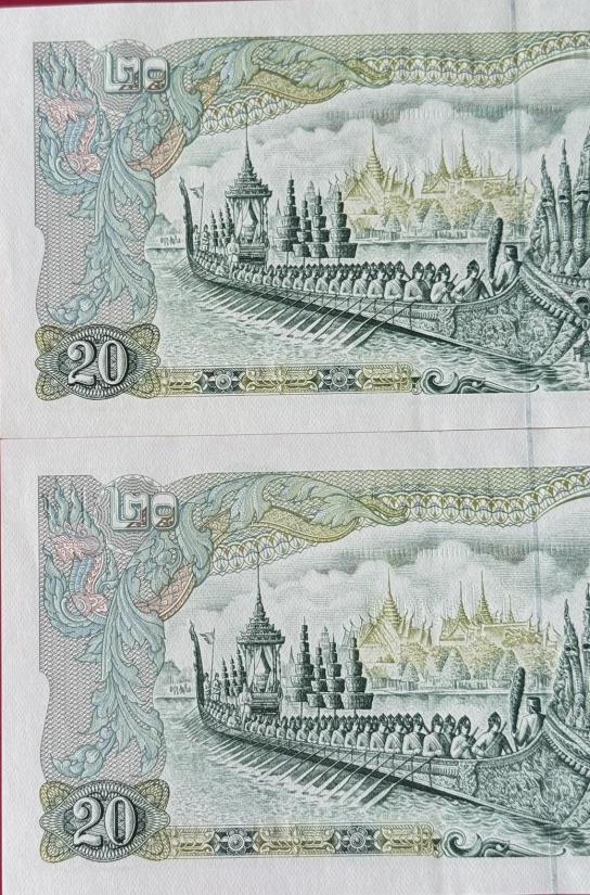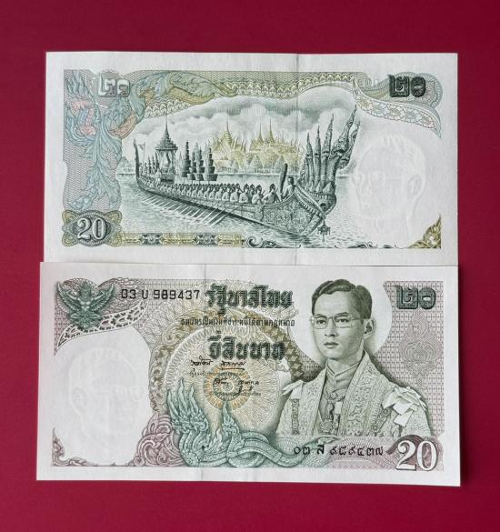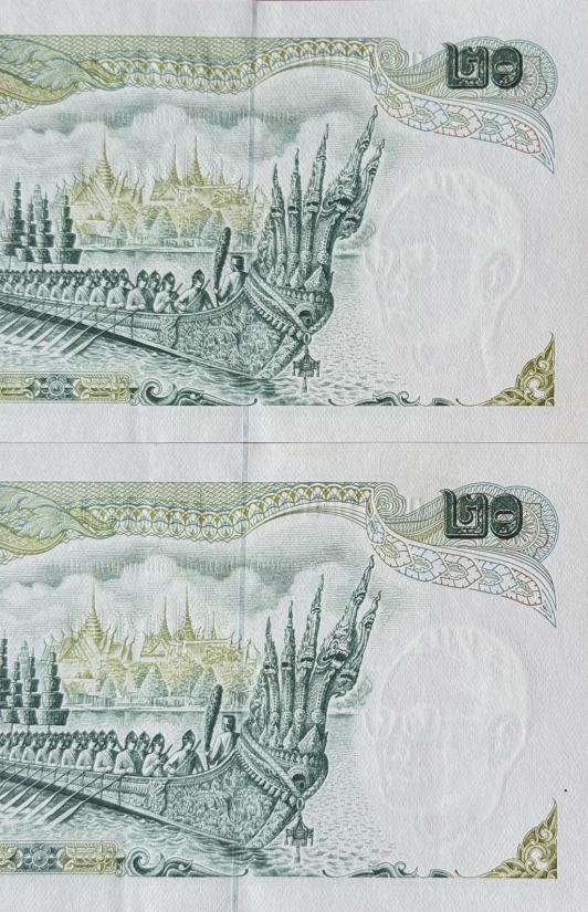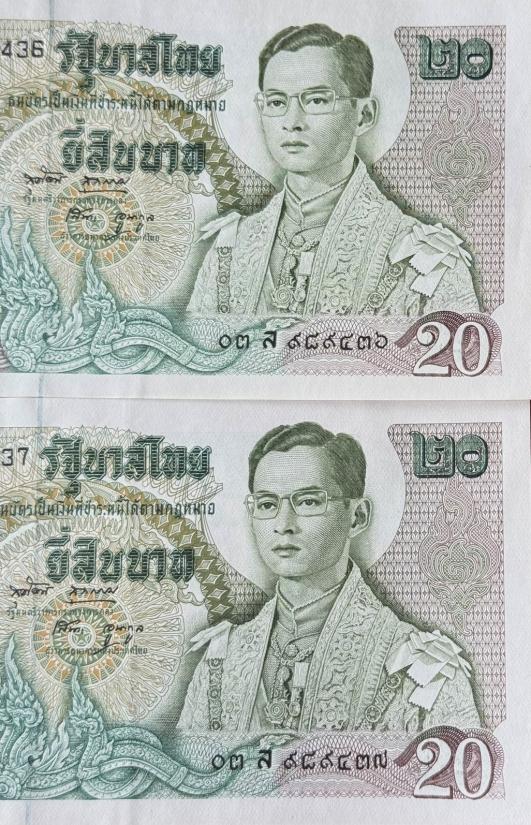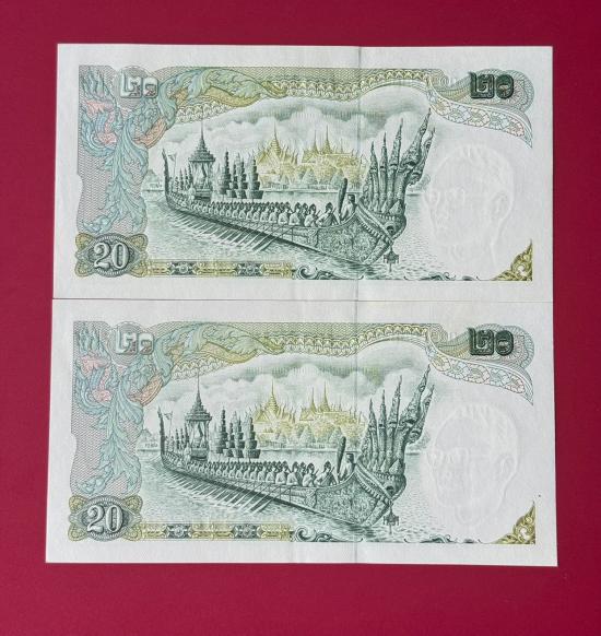 ธนบัตร 20 บาท รัชกาลที่ 9 หลังเรืออนันตนาคราช แบบ 11 จำนวน 2 ใบ สภาพตามรูป