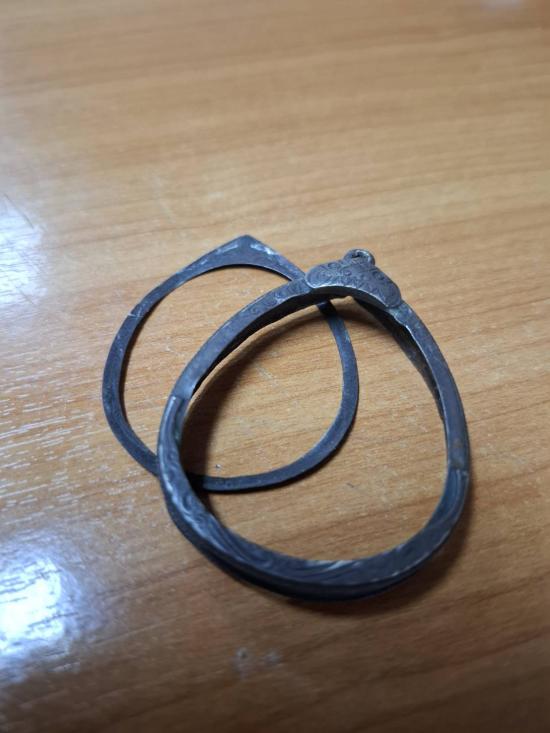 กรอบเงินเก่า ยกซุ้ม ขอบเกลียว เคยใส่ปิดตาจัมโบ้ ขอบใน กว้างสุด 3.4 cm. สูง 4 cm. |