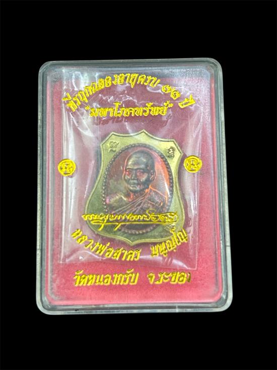 เคาะแรกแดงครับ เหรียญอาร์มหลวงพ่อสาคร มหาโภคทรัพย์ เนื้อทองฝาบาตรหน้ากากทองแดง เลข 5686 ซีลเดิม พร้อมกล่องครับ |