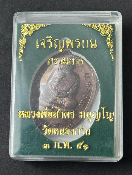 เคาะแรกแดงครับ เหรียญเจริญพรบน หลวงพ่อสาคร เนื้อทองแดง ตอกโค้ต ๙ กรรมการ เลข 518 พร้อมกล่องเดิม