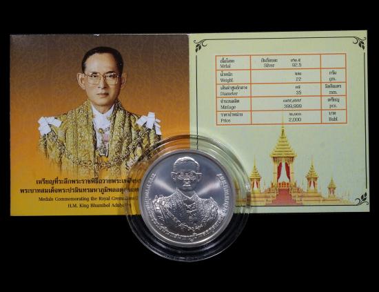 เหรียญที่ระลึก พระราชพิธีถวายพระเพลิงพระบรมศพ รัชกาลที่9 เนื้อเงิน ปี 2560 มีกล่อง แดงเคาะแรก