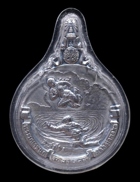 เหรียญพระมหาชนก เนื้อเงิน ปี39 พิมพ์ใหญ่ ไม่มีกล่อง ไม่มีหนังสือ เลี่ยมเก็บผิว แดงเคาะแรก