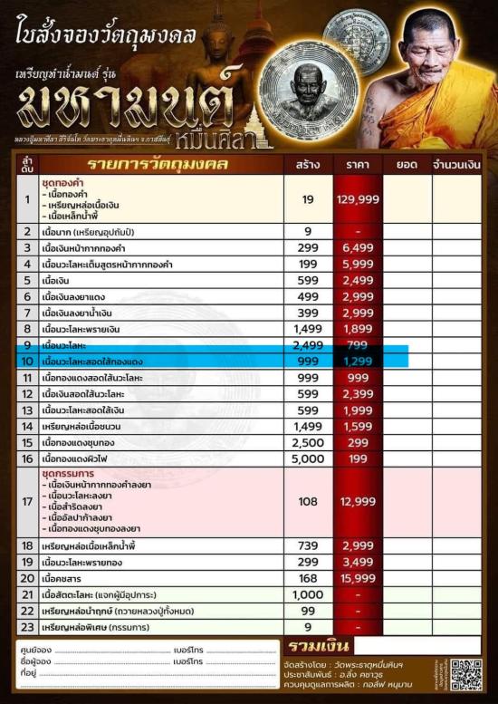 เหรียญ มหามนต์ หมื่นศิลา อายุวัฒนะมงคล๗๙ปี หลวงปู่มหาศิลา หลวงปู่ศิลา สิริจันโท ธรรมอุทยาน วัดพระธาตุหมื่นหิน จ.กาฬสินธุ์ เนื้อนวะโลหะสอดใส้ทองแดง เลข ๓๐๙ มีกล่องเดิม