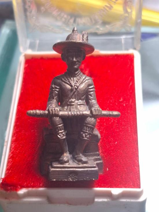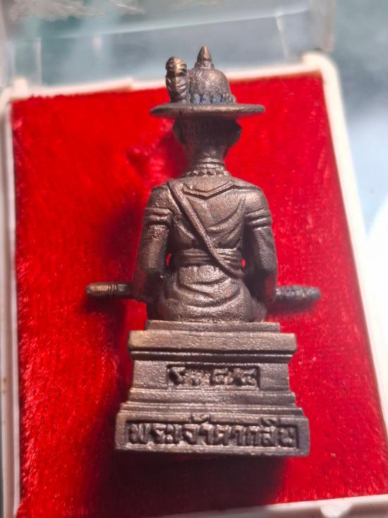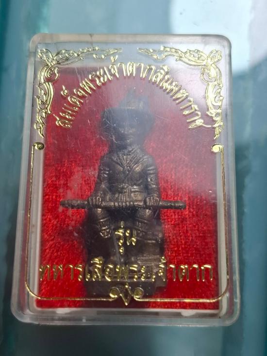 รูปหล่อพระเจ้าตากสินมหาราช รุ่นทหารเสือพระเจ้าตาก เนื้อนวะโลหะก้นมีจารไม่ทราบเกจิ สภาพสวยเดิม พร้อมกล่องเดิม