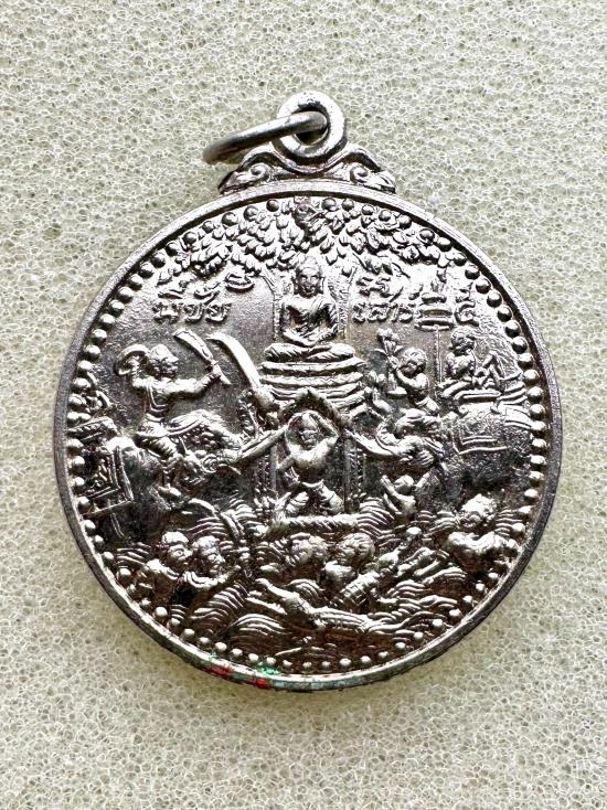 เหรียญ รุ่น๑ มีชัย เสาร์๕ หลัง สมเด็จพระนเรศวร ประกาศอิสระภา พ วัดศรีโสภณ อ.วังทอง จ.พิษณุโลก ปี 2523 กะไหล่เงิน