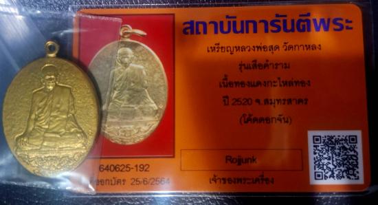 เหรียญหลวงพ่อสุด วัดกาหลง รุ่นเสือคำราม เนื้อทองแดงกะไหล่ทอง ปี 2520 สวยๆ พร้อมบัตรรับรอง